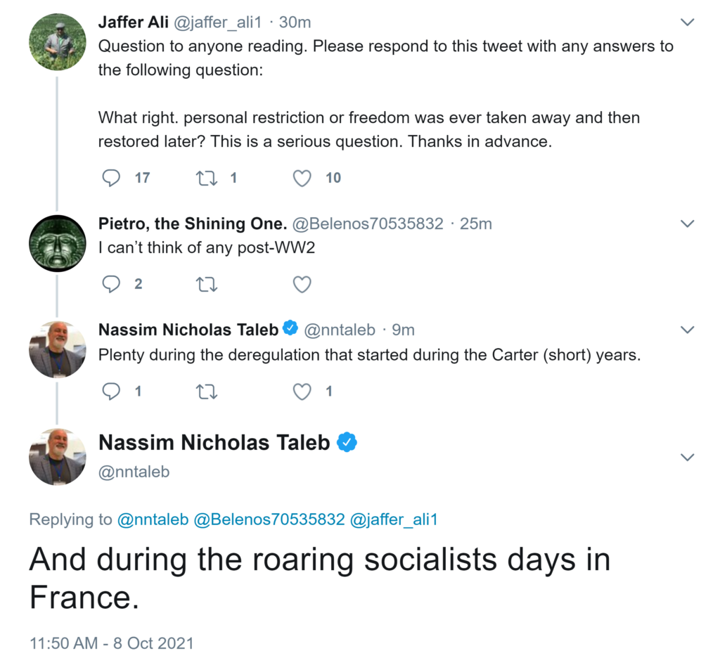 Naive libertarians like you w/Ayn Rand character names think like amoebas, making children sophisticated by comparison. You have no understanding of scaling, nuances,& the fact that an individual is embedded in an interractive environment w/other humans. Children are less naive. Few Covidopaths are circulating a statement from my Principia saying the majority should not coerce the minority. Misses the earlier statment in Principia that this does not apply to pandemics where risks don’t scale properly; minority threatens majority. The Gov main role is PP.