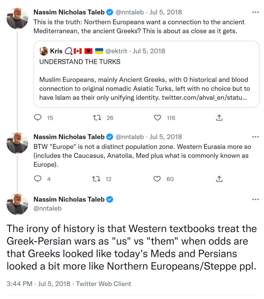 This is the truth: Northern Europeans want a connection to the ancient Mediterranean, the ancient Greeks? This is about as close as it gets. BTW “Europe” is not a distinct population zone. Western Eurasia more so (includes the Caucasus, Anatolia, Med plus what is commonly known as Europe). The irony of history is that Western textbooks treat the Greek-Persian wars as “us” vs “them” when odds are that Greeks looked like today’s Meds and Persians looked a bit more like Northern Europeans/Steppe ppl.