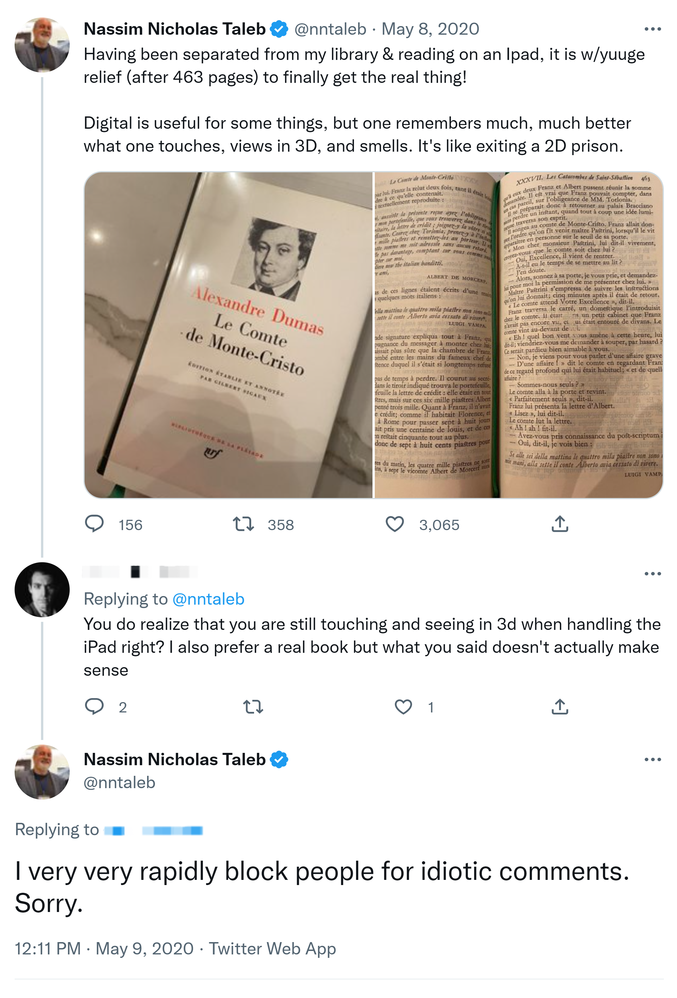 Having been separated from my library & reading on an Ipad, it is w/yuuge relief (after 463 pages) to finally get the real thing! Digital is useful for some things, but one remembers much, much better what one touches, views in 3D, and smells. It’s like exiting a 2D prison. The other problem is attending a lecture on Zoom tires you much more than one in the physical world. You need to focus with some intensity all the time, can’t get cues otherwise.